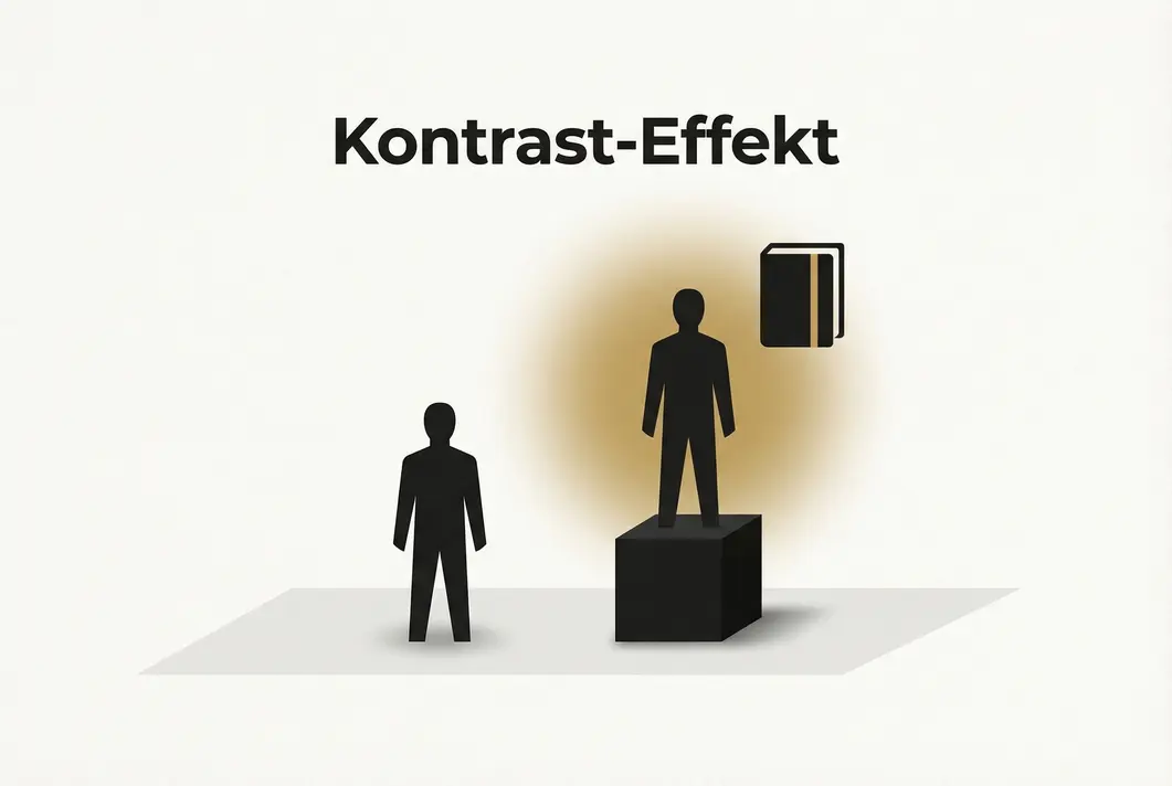 Anbieter A präsentiert sich als erfahrener Berater. Anbieter B präsentiert sich als erfahrener Berater und Autor des führenden Fachbuchs zu genau diesem Thema. Wen wird der Kunde instinktiv als kompetenter und vertrauenswürdiger einstufen? Die Antwort liegt in einem mächtigen psychologischen Prinzip: dem Kontrast-Effekt.